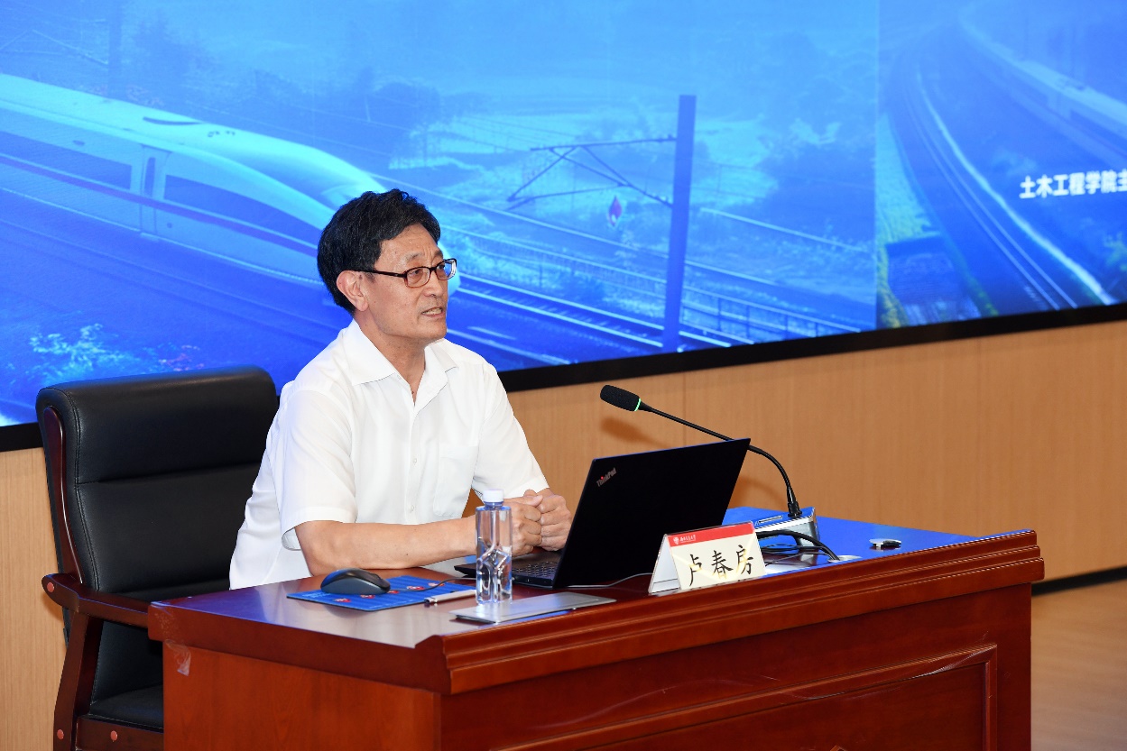 卢春房院士勉励在场师生,交通事业大有可为,交通技术发展没有止境,创新之路宽阔而漫长。他深情地回顾了母校的辉煌历史和“双严”传统,赞扬母校在综合交通技术方面具有人才、设施、基础研究、应用研究等方面的优势,相信大家齐心协力、勇攀高峰,一定会突破技术瓶颈、产生高水平的科研成果,为交通强国建设做出重大贡献。