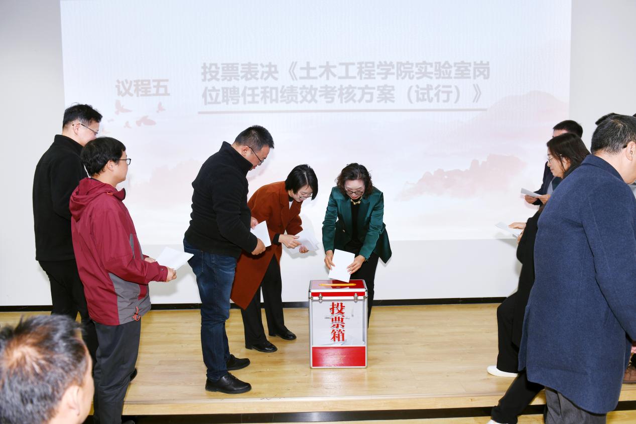 大会在庄严的国歌声中开幕。蒲黔辉院长向大会作了题为《百年坚守 凝心聚力 守正创新 突破重围》的工作报告和财务工作报告。报告全面介绍了土木学院发展现状;针对面临的挑战和机遇,阐述了已经开展的探索和实践,指出要回归人才培养和推动学科转型升级;在管理和服务方面提出了深化综合改革配套等措施。与会代表听取并通过了学院工作报告和财务工作报告。
