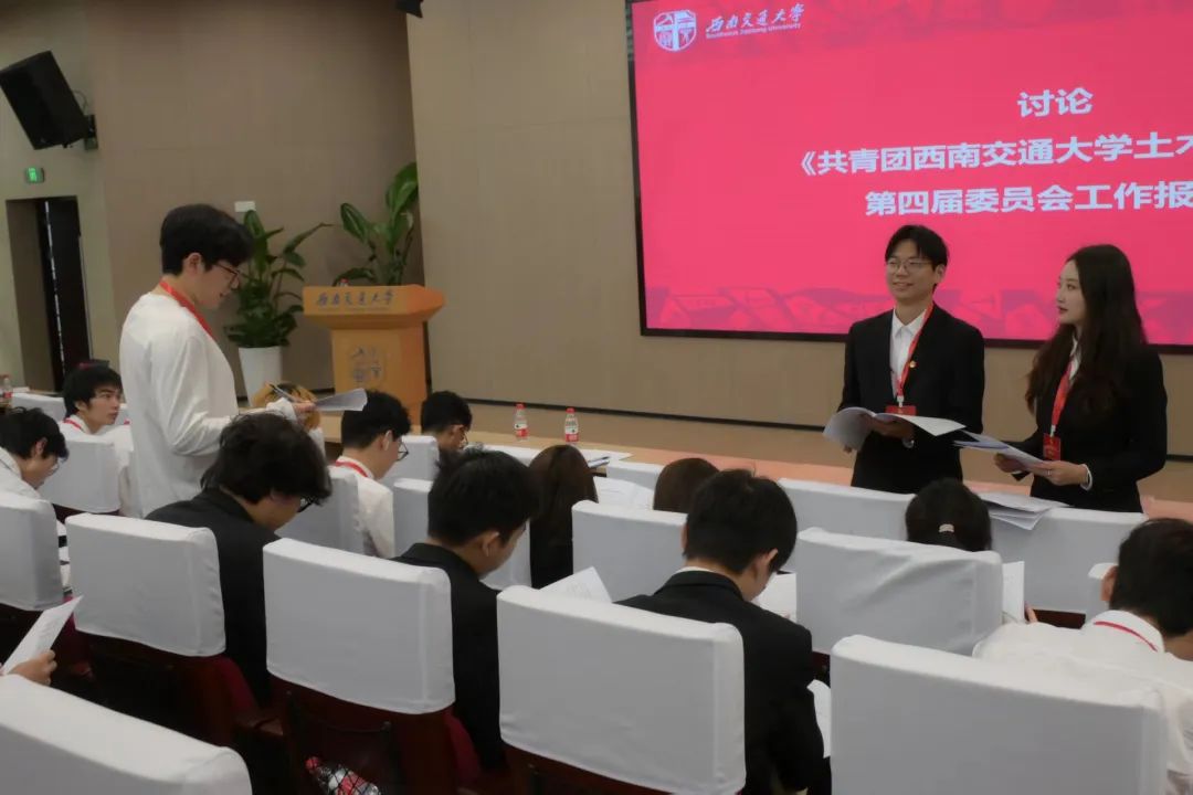第四届委员会作了题为“红土精神淬青春力量,实干担当绘土木华章 在习近平新时代中国特色社会主义思想指引下团结引领西南交大土木青年挺膺担当”的工作报告。报告全面、客观地总结了第四次代表大会以来的工作实效,对当前工作中存在的不足进行了分析与思考,进一步提出了未来工作的主要任务和前进方向。