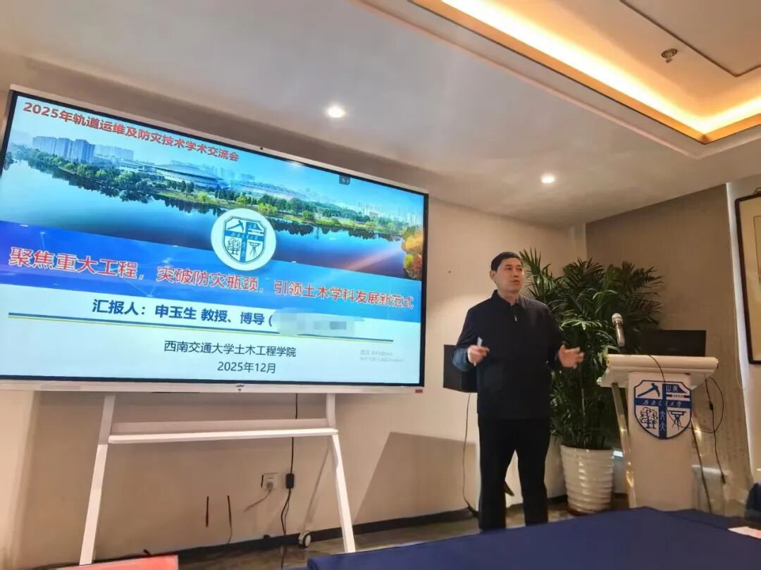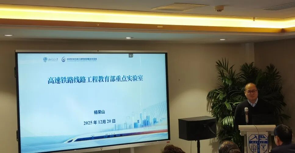 杨荣山教授分享交流的题目是《高速铁路线路工程教育部重点实验室在轨道与防灾方向的研究探索》。