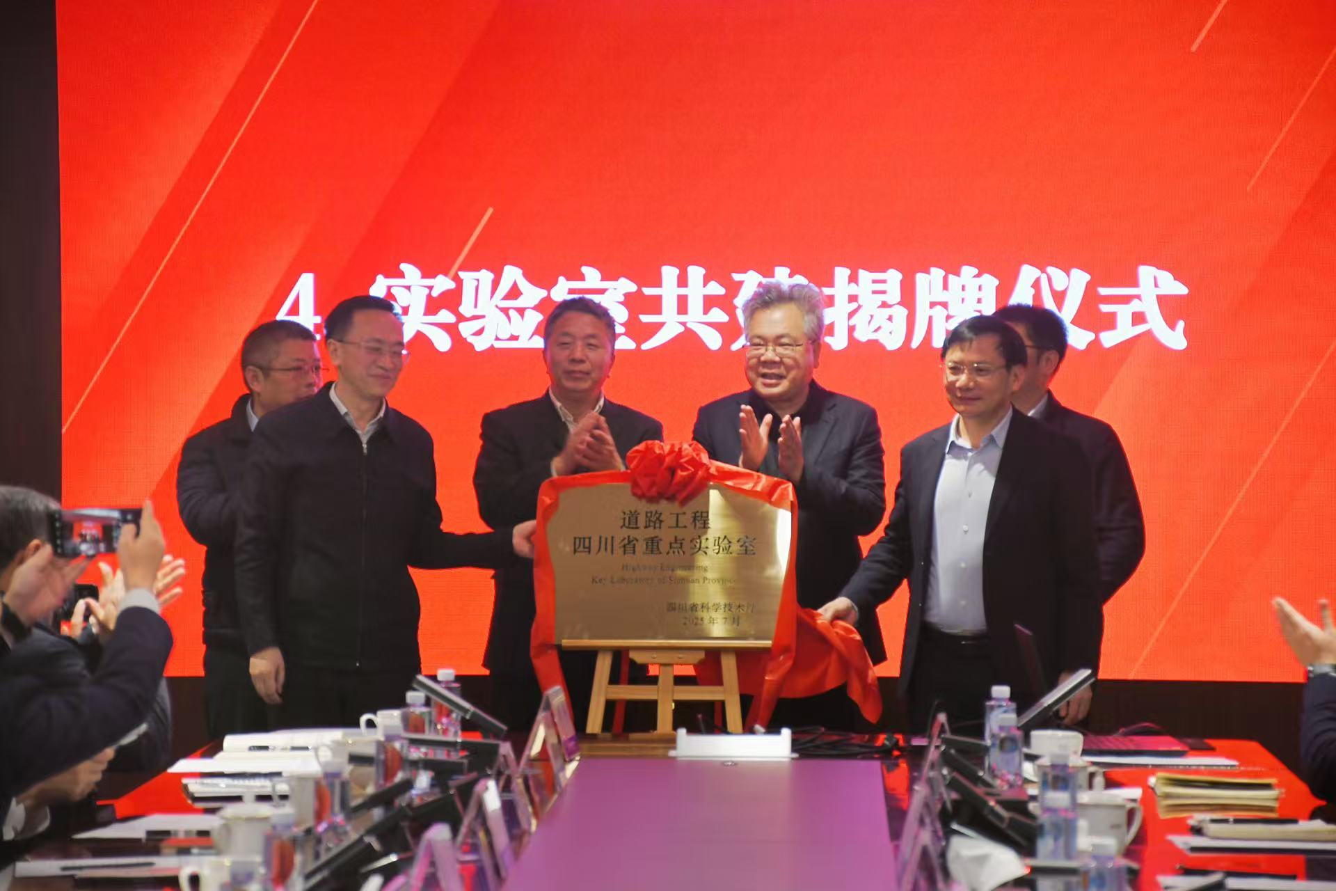 在热烈掌声中,道路工程四川省重点实验室共建揭牌仪式正式举行,标志着实验室在校企共建模式下迈向更高层次建设新阶段。