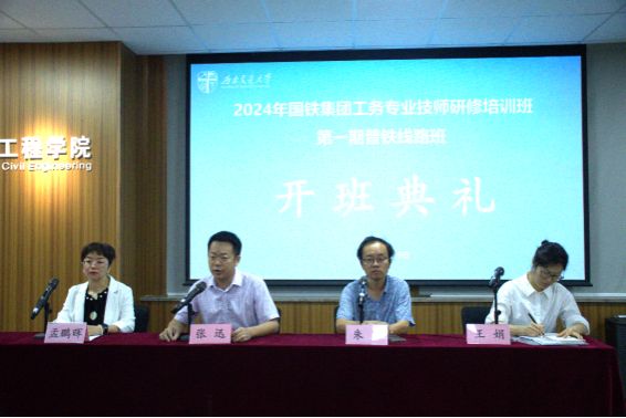 2024年6月19日上午8:30,国铁集团工务专业技师研修培训班(第一期)普铁线路班开班典礼在九里校区土木馆1234教室顺利举行。出席此次开班典礼的有萝莉岛