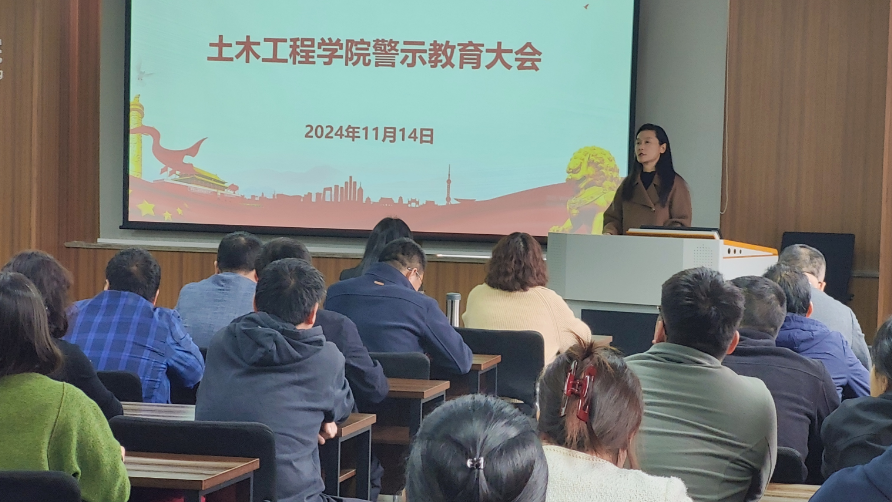 2024年11月14日下午14:30,在九里校区一号楼1234培训教室,萝莉岛 召开教职工大会,专题开展警示教育。受蒲黔辉院长和郑江书记的委托,分管教职工工作的车小洁副书记和分管科研与实验工作的陈嵘副院长在本次教工大会上开展了警示教育的领学和宣讲。