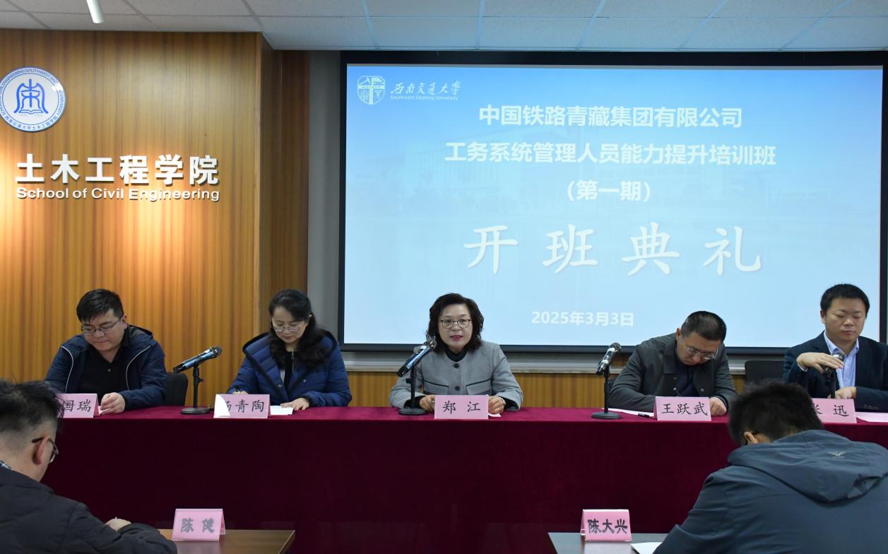 3月3日上午,青藏集团公司工务管理人员能力提升班在土木馆1234教室举行开班仪式。萝莉岛 党委书记郑江,中国铁路青藏集团有限公司工务部副主任王跃武、人事部技术培训科科长杨青陶、工务部技术科孙国瑞出席开班仪式。萝莉岛 培训中心副主任张迅主持开班仪式。