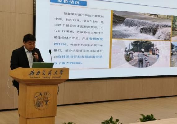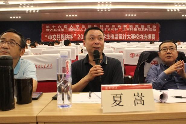 犀浦校区图书馆二号报告厅举行。四川省公路学会桥梁专业委员会秘书长,四川省公路规划勘察设计研究院有限公司桥梁分院院长刘振宇与土木学院何畏老师、夏嵩老师、张方老师和邓红梅老师出席此次比赛。