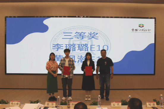 经过激烈的角逐,主持人宣布了“中交共规院杯”2024世界大学生桥梁设计大赛校内选拔赛的校级获奖名单。刘秘书长,夏嵩老师,何畏老师,邓红梅老师,张方老师为获奖队伍颁发荣誉证书。现场气氛热烈,同学们为获奖队伍送去掌声与欢呼。