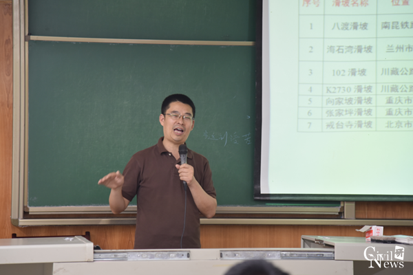 随后,各科研团队的教师代表依次上台,就所在团队的主要研究方向、正在开展的科研工作、团队在支持本科生科研等方面的情况进行介绍。参与此次活动的教师代表有:地下工程系的方勇教授、于丽副教授、郭春副教授、申玉生副教授;桥梁工程系的占玉林副教授、强斌老师;道路与铁道工程系的赵才友副教授、袁胜洋副教授、刘钰老师、陈德老师;岩土工程系的张迎宾副教授、杨涛副教授、徐华副教授、袁冉老师;建筑工程系的周强老师、许浒老师;交通土建系的王玉锁副教授;防灾减灾研究所的孙晓丹副教授。老师们的精彩介绍赢得了同学们的阵阵掌声。