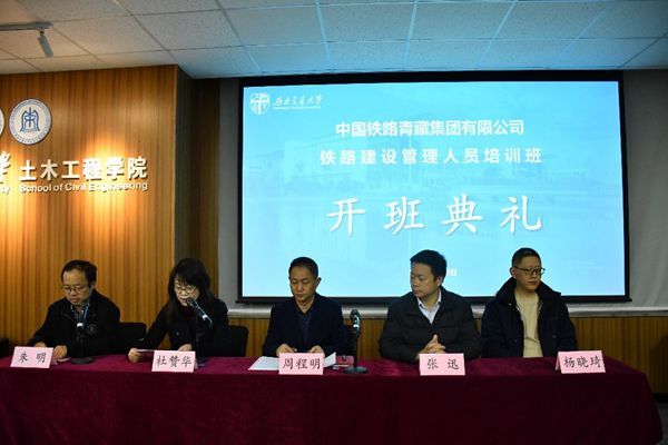 2024年3月2日上午8:20,中国铁路青藏集团有限公司铁路建设管理人员培训班开班典礼在九里校区土木馆1234教室顺利举行。主席台就坐的有中国铁路青藏集团有限公司建设部主任周程明、萝莉岛